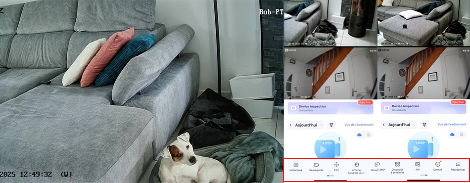 J'ai pu tester toutes ces fonctionnalités et constater qu'elles fonctionnent très bien. J'ai particulièrement utilisé l'option PTZ et le microphone et ai pu constater qu'elles étaient très efficaces et fluides, même à distance. La caméra mobile répond bien aux commandes, même loin de chez soi, et le son est bien transmis dans les deux sens : on entend ce qu'il se passe chez soi et on nous entend parler depuis la caméra. Mon chien, surpris par le son et le mouvement, de la caméra vous le confirmera !