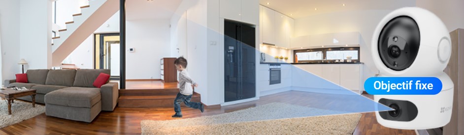 La H9c est une caméra conçue spécifiquement pour l’extérieur. Elle combine un objectif grand angle fixe pour une surveillance continue et un second objectif orientable à 360° pour un suivi plus précis.