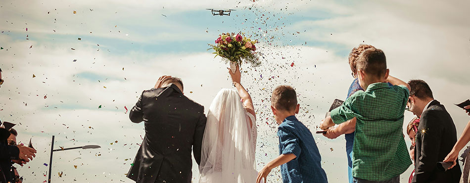 Le drone est devenu l'invité incontournable des cérémonies. Il permet de capturer l'ampleur d'un lieu de réception, une haie d'honneur ou une photo de groupe géante que même un photographe sur une échelle ne pourrait obtenir.