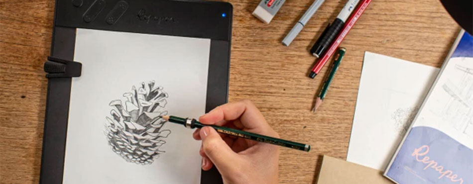 Sachez qu’il existe une version moins onéreuse de la Repaper Faber-Castell : la Repaper Xlite. Celle-ci a des fonctionnalités similaires à sa grande-sœur, mais ne fonctionnera que sur ordinateur et ne sera pas nomade. Adieu la batterie, la mémoire interne ou encore le port de carte SD. Elle dispose cependant des mêmes fonctionnalités avancées pour le dessin papier, comme l’utilisation de n’importe quel type de feuille et de crayon, ou encore de niveaux de pression pour la partie digitale.