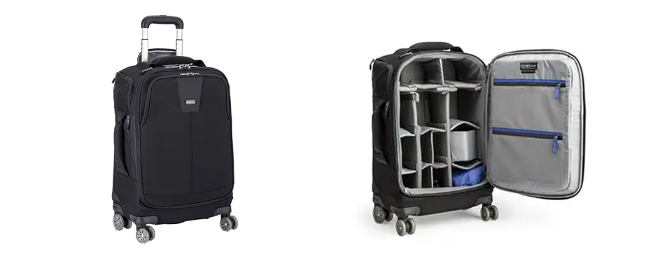 Pour un transport sécurisé et une capacité maximale, la valise Think Thank Airport Roller Derby coche toutes les cases ! Avec sa capacité à transporter 2 boîtiers d'appareil photo avec objectifs fixés, 1 boîtier de caméra non saisi, 6 à 7 zooms ou stroboscopes standards, un ordinateur portable de 15" et une tablette de 10", cette valise est idéale pour les photographes en déplacement. Facile à manœuvrer, elle minimise la fatigue musculaire grâce à sa répartition optimale du poids et peut rouler de trois façons : debout à vos côtés, en inclinaison sur la roue arrière ou latérale. Par ailleurs, la poignée s'étend de 99 à 106 cm pour une meilleure ergonomie lors de la poussée.