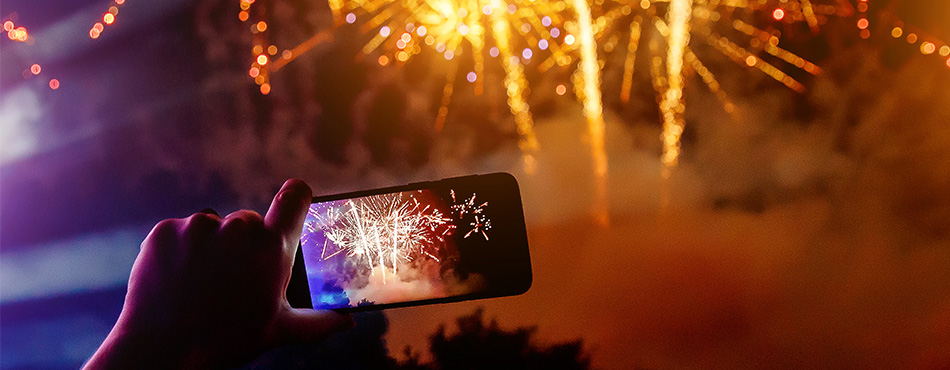Avec un reflex, un hybride ou pour aller plus loin avec votre compact, basculez en mode à priorité vitesse (S ou TV) ou en mode manuel (M). Vous allez ainsi choisir la vitesse d'obturation, c'est à dire le temps d'exposition, qui doit être long : de 2 à 10 secondes. L'exposition longue va vous permettre de capter les mouvements des fusées et des bombes. Vous obtiendrez des trainées lumineuses naturelles et nettes. Jetez un oeil à vos premières photos pour voir si vous devez ajuster la vitesse et l'ouverture.