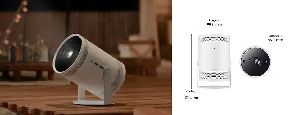 Ces modèles affichent souvent un poids plume (moins de 2 kg, parfois sous la barre du kilo) et un format réduit, permettant de les glisser dans un sac à dos ou une mallette. Le Freestyle de Samsung, par exemple, est un cylindre compact de seulement 830g !
