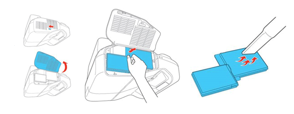 La plupart des vidéoprojecteurs ont un filtre à air qui empêche la poussière et les débris d’entrer dans l’appareil. Retirez délicatement le filtre et utilisez une petite brosse douce ou un aspirateur pour enlever la poussière. Dans certains cas, si le filtre est trop sale ou abîmé, il peut être nécessaire de le changer. Pour cela, contactez le fabricant.