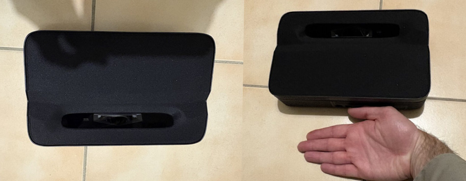 Aucune nuisance sonore ou très peu. Bien sûr, il fait un peu de bruit mais cela reste négligeable. À moins de regarder un film muet, aucune chance d’entendre le ronronnement de l’appareil. D'ailleurs, au niveau du son, il est équipé de 2 hauts-parleurs de 7 watts, ce qui est encore une fois exceptionnel pour un produit nomade. Néanmoins, je conseille de le connecter à une enceinte Bluetooth pour profiter d’une qualité audio encore meilleure, l'appareil étant équipé du Bluetooth, ou bien à un système sonore comme une barre de son ou un home-cinéma via sa connectique audio optique (SPDIF).