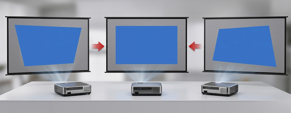 Correction des trapèzes par réglage des angles de l’image pour obtenir un rectangle.