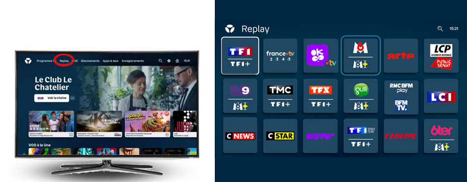 Les décodeurs TV de votre FAI (fournisseur d’accès à internet) proposent les programmes TV en replay. Vous les trouverez dans le Menu replay.
