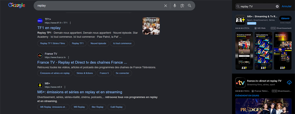 Toutes les chaînes proposent du replay. Mais pour le trouver, il faut télécharger les applications de ces différentes chaînes. Vous trouverez :