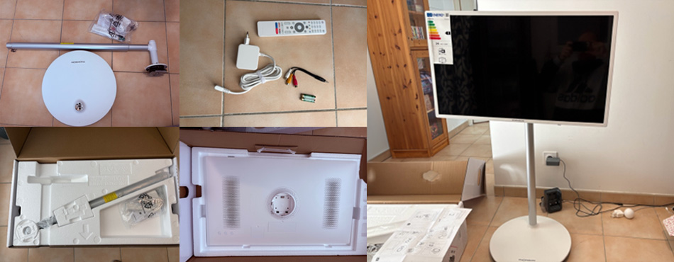 Car le point fort de ce produit, c’est avant tout sa conception nomade. Dans le pied se trouve en effet une batterie de 4 heures d’autonomie et, cerise sur le gâteau, il est équipé de roulettes. Ce qui permet de la déplacer très facilement. Et c’est ça son véritable atout. Elle peut vous suivre partout dans la maison. Envie de regarder votre programme préféré sur Canal+ en faisant la cuisine ? Aucun problème. Vous souhaitez regarder votre film sur votre disque dur allongé dans votre lit ? Aucun problème, elle vous suivra partout et longtemps. Bien sûr, la TV est inclinable et peut être réglée en hauteur sur 10 cm de plus ou de moins.