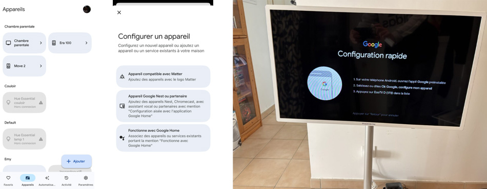 La mise en service est on ne peut plus simple. Vous pouvez soit la mettre en service en passant par votre smartphone via l’application Google Home, soit simplement via la télécommande de l’appareil. C’est simple et rapide. On a l’impression de configurer un téléphone portable, ce qui est normal étant donné qu’elle est équipée d'Android TV.