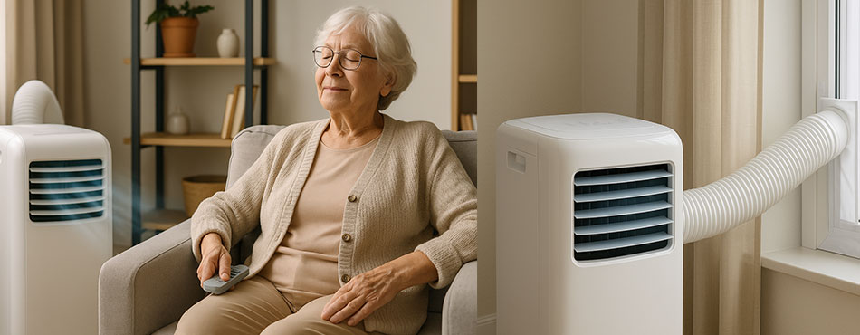 Un climatiseur aspire l’air ambiant par l’arrière. Ce dernier va être filtré à l’intérieur de l’appareil et passer ensuite par une zone de froid pour être déshumidifié. La zone de froid est alimentée par le gaz réfrigérant R290 qui a peu d'impact sur l'environnement. Le climatiseur renvoie l’air froid par l’avant et rejette l’air chaud et humide par un tuyau à l’arrière de l’appareil. Un kit de calfeutrage (à prévoir en option) permet au tuyau d'être fixé à la fenêtre.