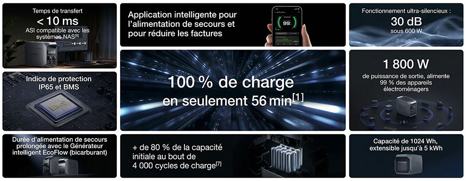 L’EcoFlow DELTA 3 est une station d’énergie portable (power station) d’une capacité de 1024 Wh, associée à un onduleur 230 V annoncé à 1 800 W (avec capacité de pointe plus élevée). L’objectif est clair, proposer :