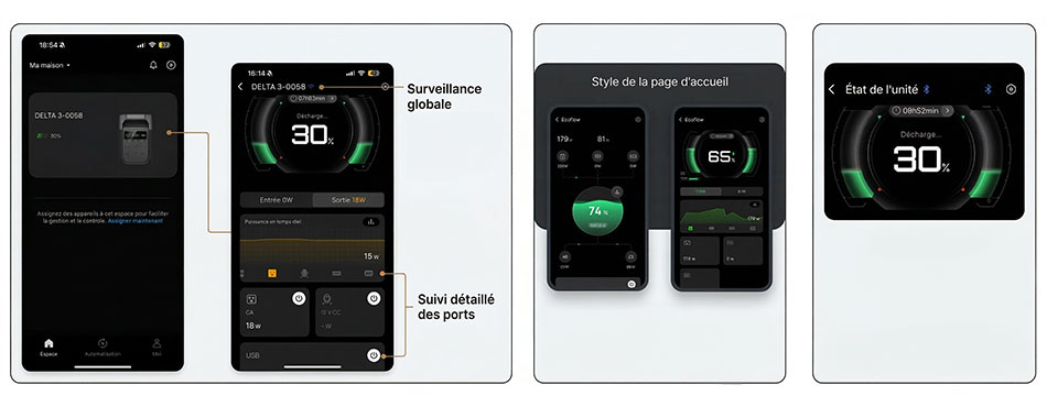 Pilotage et suivi via EcoFlow (WiFi/Bluetooth) |