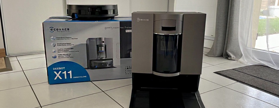 L'Ecovacs Deebot X11 Omnicyclone promet d'être un véritable assistant quotidien dans l’entretien de votre intérieur. Il se présente comme l’un des modèles les plus haut de gamme de la marque chinoise Ecovacs.