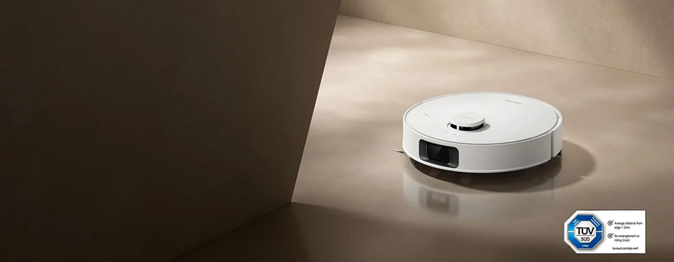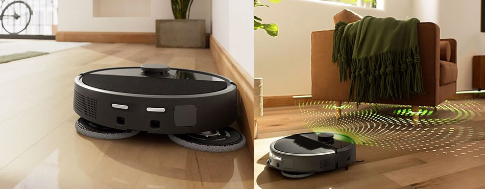 Son lidar est embarqué dans l’appareil, diminuant la hauteur du robot à 8,1cm, ce qui lui permet de passer facilement sous les meubles. Il est aussi équipé de la navigation AIVI 3D à assistance IA pour optimiser le nettoyage des bords et contourner les obstacles.