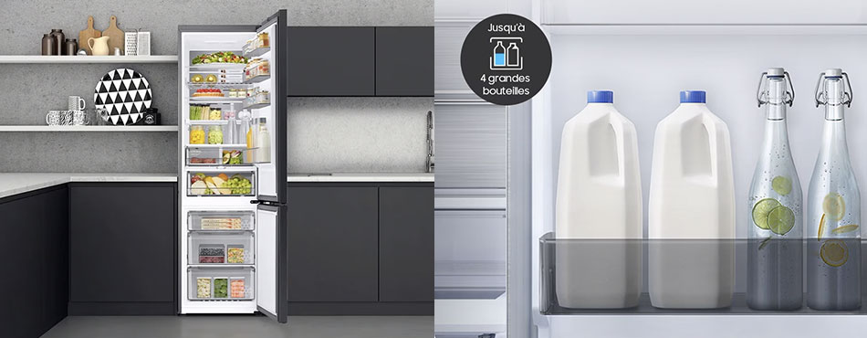 Le réfrigérateur avec congélateur Samsung RB34C602DSA est l’allié idéal pour une conservation optimale de vos aliments ! Grâce au froid ventilé intégral et à la technologie MultiFlow, l’air est réparti de façon homogène dans tout le compartiment. Cela évite la formation de givre et garantit une température stable à chaque étage. Avec sa technologie Space Max™, il offre une capacité intérieure généreuse sans prendre plus de place dans votre cuisine. Il est aussi pratique et connecté : ce réfrigérateur se contrôle à distance via l’application SmartThings. Vous pouvez même activer le mode AI Energy pour réduire votre consommation jusqu’à 15 % en fonction de vos habitudes. Un concentré de technologie pour mieux garder ses aliments au frais !