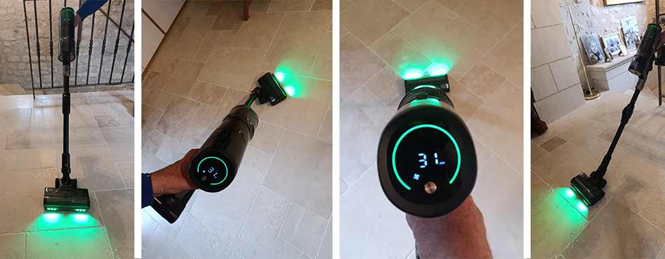 | Entretien des sols | Utiliser la brosse motorisée avec son éclairage LED vert pour débusquer la poussière sous les meubles. | Éviter les tapis à poils très longs qui peuvent freiner la rotation de la brosse. |