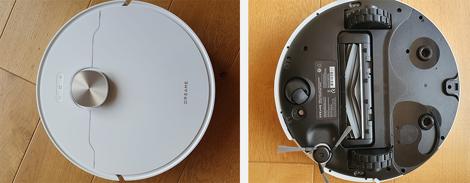 Le robot mesure 350 x 350 x 103.8 mm, tandis que la base mesure 456.7 x 340 x 590.5 mm.