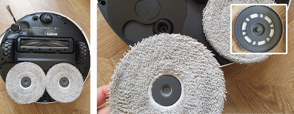Les serpillères intégrées se nettoient automatiquement lorsque l'aspirateur retourne à la base pour s'alimenter en eau, ce qui permet de minimiser les interventions humaines qui pourraient être nécessaires avec ce type d'appareil. Ce qu'il y a d'intéressant est également la capacité du robot laveur à laisser les serpillères à l'intérieur de la base lorsque le mode "Aspiration seule" est sélectionnée. Cela permet d'éviter de les salir inutilement en les emportant sur chaque session de nettoyage.