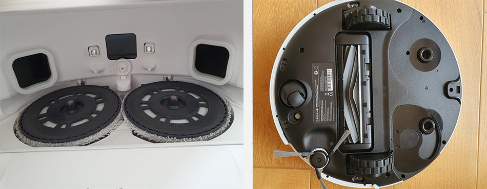 En effet, son lavage en toute autonomie vous permet de profiter d'un auto-entretien de qualité du robot et de ses accessoires. Il vide automatiquement la saleté, sèche ses serpillères à l'air chaud, se recharge en eau et en solution grâce aux bacs dédiés à cette fonction (que l'on doit remplir régulièrement), nettoie les serpillères et la plaque de lavage avec de l'eau chaude à 70 degrés afin de s'assurer de la disparition de toutes les taches et mauvaises odeurs.