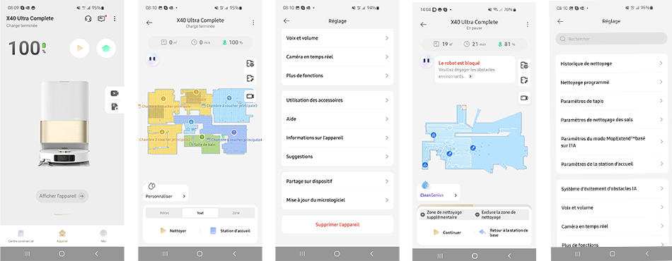 L'application est très riche en fonctionnalités et permet une utilisation optimale du robot aspirateur laveur. La seule remarque que je peux faire est que son interface peut manquer de clarté pour certains. J'ai souvent dû chercher dans plusieurs menus pour accéder aux paramètres essentiels, ce qui peut être frustrant pour un utilisateur qui souhaite une utilisation très intuitive. La cartographie est quant à elle très performante, bien qu'elle peut être légèrement perturbée par des élements réfléchissants tels que des miroirs ou des baies vitrées. J'ai tout de même pu y remédier en réalisant des ajustements manuels relativement simples à effectuer.
