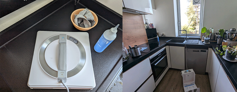 Le résultat est très satisfaisant. J'admets que je ne m’attendais pas à ça bien qu'il reste une légère trace à l’extérieur. Les angles ont été correctement nettoyés, à l'exception d'une petite trace dans un angle du haut. Les charnières du robot, qui lui permettent d’avancer, sont équipées de petites brosses qui évitent de laisser des marques.