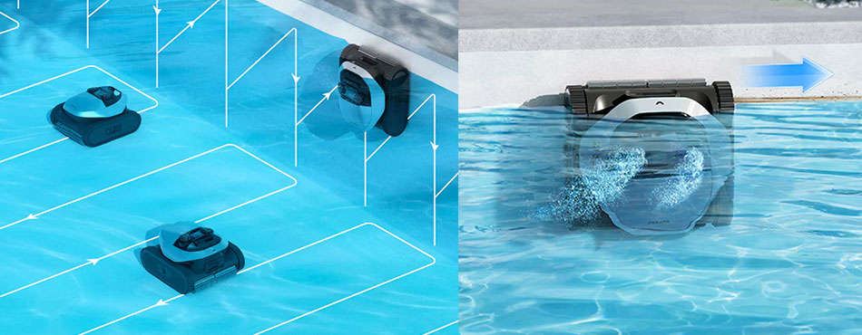 Le nettoyage par aspiration : le robot piscine aspire les particules présentes dans l’eau ou collées sur le fond et les parois de la piscine.
