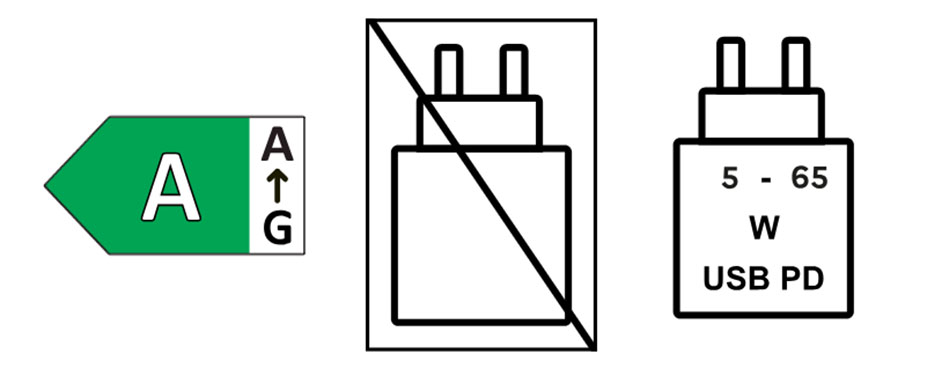 Sur les nouveaux modèles conformes à la loi, au moins un port USB-C sera dédié à la charge et identifié par un petit pictogramme en forme d'éclair ou de prise.
