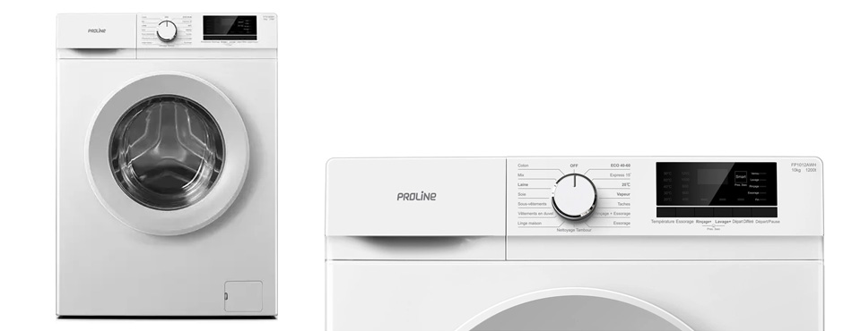 Pour les plus petits budgets, le lave-linge Proline FP6120DWH offre une capacité de 6 kg pour 2 personnes, avec son tambour de 45 litres. Il est doté de 23 programmes de lavage et d'une vitesse d'essorage pouvant aller jusqu'à 1200 tours/min. Proline a équipé sa machine d'une fin différée et d'une fonction d'affichage.