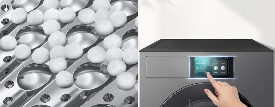Un des principaux atouts de l'intelligence artificielle réside dans la fonction de dosage automatique de la lessive et de l'adoucissant. Terminé le dosage au bouchon approximatif et qui gaspille beaucoup trop de produit ! Grâce au distributeur automatique, cette machine à laver Samsung puise exactement ce dont elle a besoin selon le poids du linge.
