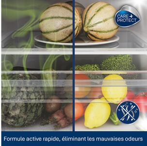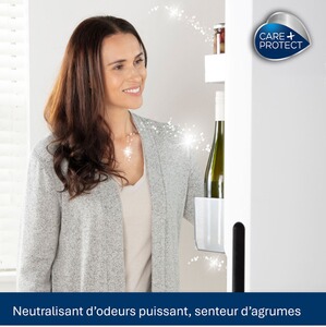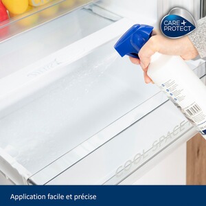 7824513Le spray nettoyant Care + Protect pour réfrigérateur et congélateur, désinfecte les surfaces internes de votre réfrigérateur qui peut être exposé à des moisissures, et élimine les mauvaises odeurs en laissant un agréable parfum d’agrumes.
