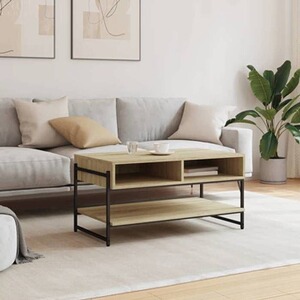 Décorez votre salon avec cette table basse élégante, elle s'harmonise facilement avec les meubles de tout style de votre maison. Matériau robuste et durable : le bois d'ingénierie est d'une qualité exceptionnelle avec une surface lisse et présente également résistance, stabilité et résistance à l'humidité. Le cadre métallique de la table d'appoint assure robustesse et stabilité.Beaucoup d'espace de rangement : le bout de canapé offre un grand espace de rangement pour garder vos magazines, livres, objets décoratifs et autres objets indispensables au quotidien bien organisés et à portée de main.Dessus robuste : le dessus robuste de la table basse est idéal pour placer vos boissons ou tout autre article dont vous avez besoin à portée de main.Pieds réglables : les pieds réglables munis de coussinets en plastique maintiennent la table centrale en équilibre sur un sol inégal et augmentent sa stabilité. Attention :Pour éviter qu'il ne soit renversé, ce produit doit être utilisé avec le dispositif de fixation au mur fourni. Couleur : chêne sonomaMatériau : bois d'ingénierie, métalDimensions : 90 x 50 x 45 cm (L x l x H)Capacité de charge maximale par étagère : 25 kgAssemblage requis : ouiLegal Documents:Vous trouverez ici plus de détails sur la façon d'empêcher vos meubles de basculerCouleur : chêne sonomaMatériau : bois d'ingénierie, métalDimensions : 90 x 50 x 45 cm (L x l x H)Capacité de charge maximale par étagère : 25 kgAssemblage requis : ouiLegal Documents:Vous trouverez ici plus de détails sur la façon d'empêcher vos meubles de basculer